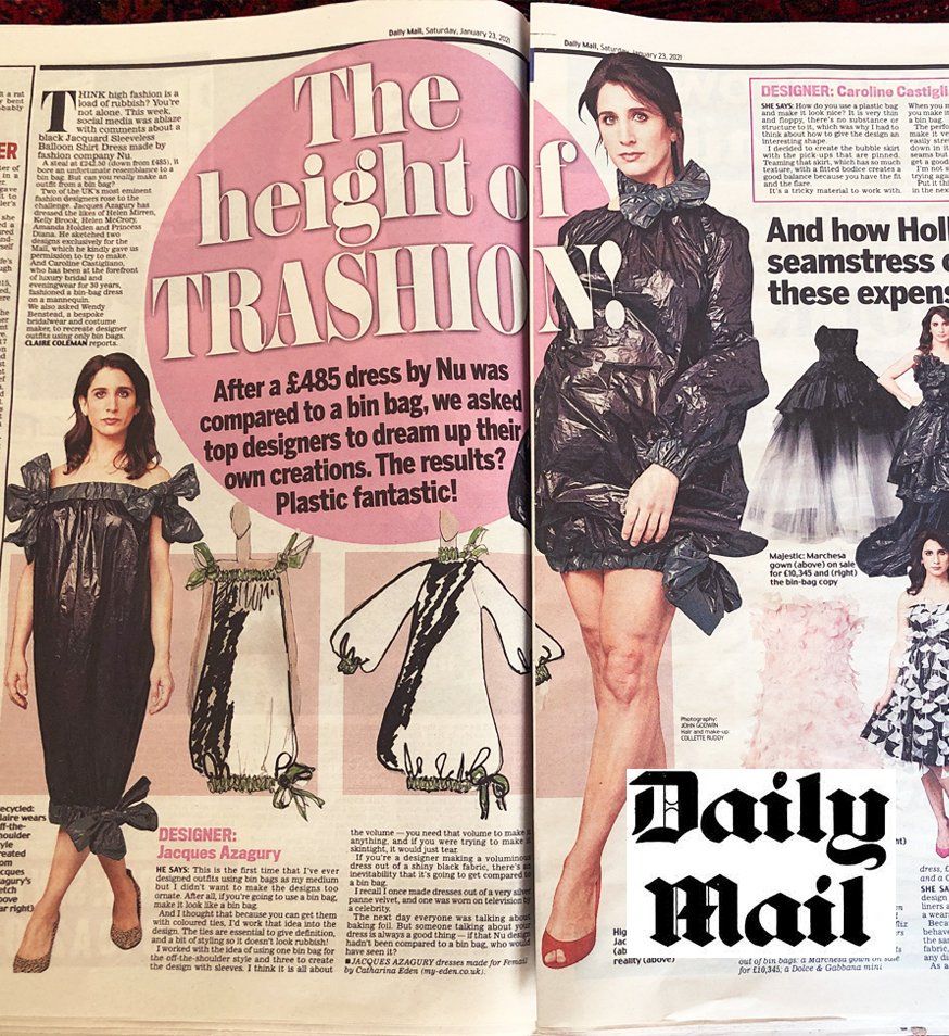 A very fun project of making dresses based on Jacques Azagury's designs using only bin bags in less than 24h.