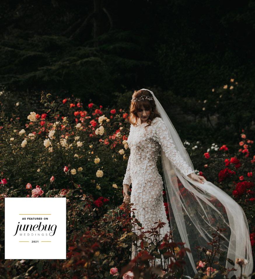 Maisie's stunning elopement wedding was beautifully captured and featured on June Bug wedding blog. Maisie chose on of our famous stretch lace dresses for her special day.