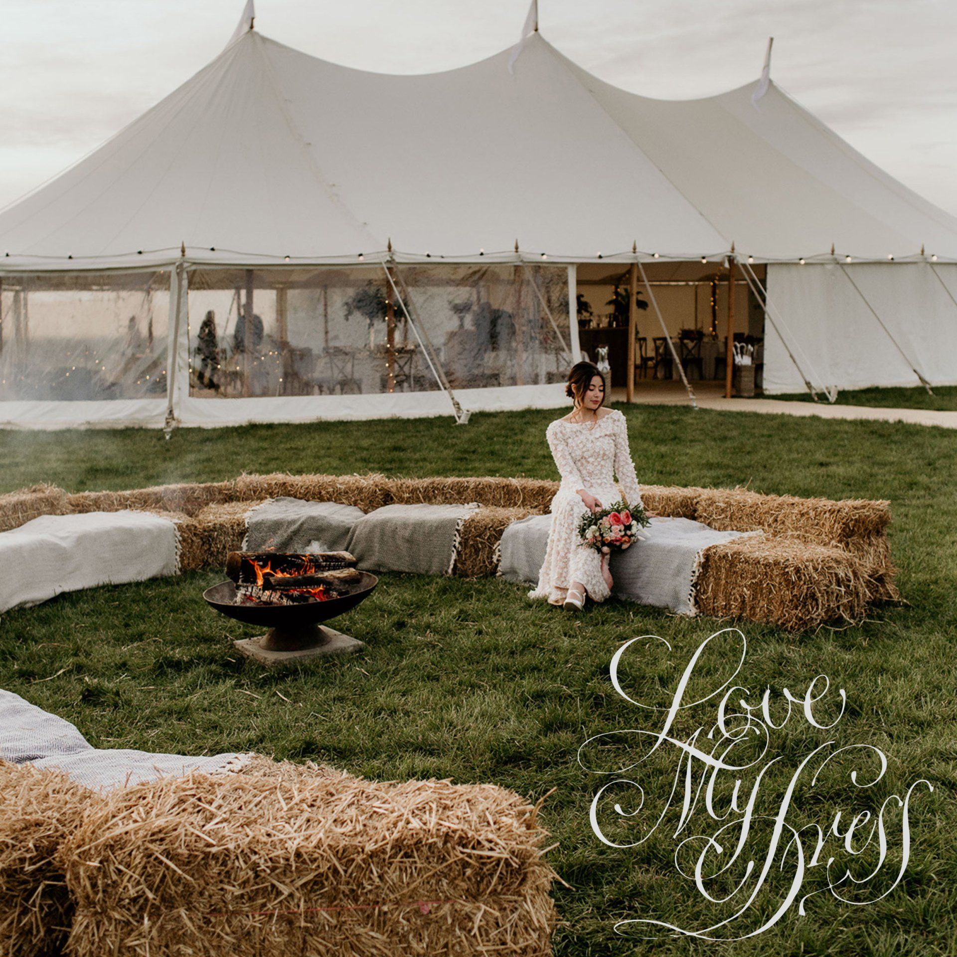Our "Elopement" stetch lace dress featured in Love My Dress blog as part of an ethical and bohemian tipi wedding styled shoot.